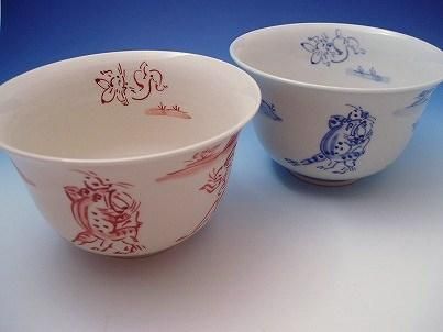 ウサギ・カエル・サルの躍動感のあるカワイイごはん茶碗です。