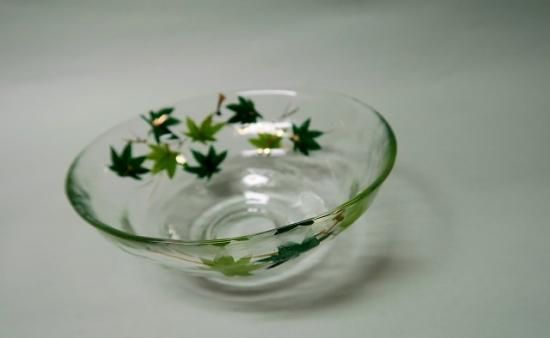 手作りのガラス抹茶碗に京都の絵付師の手描きで描きました。