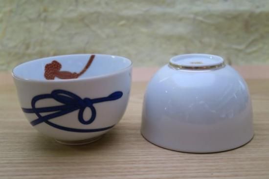 汲出碗の外側に青い組紐を内側には赤い組紐の緒を描きました。